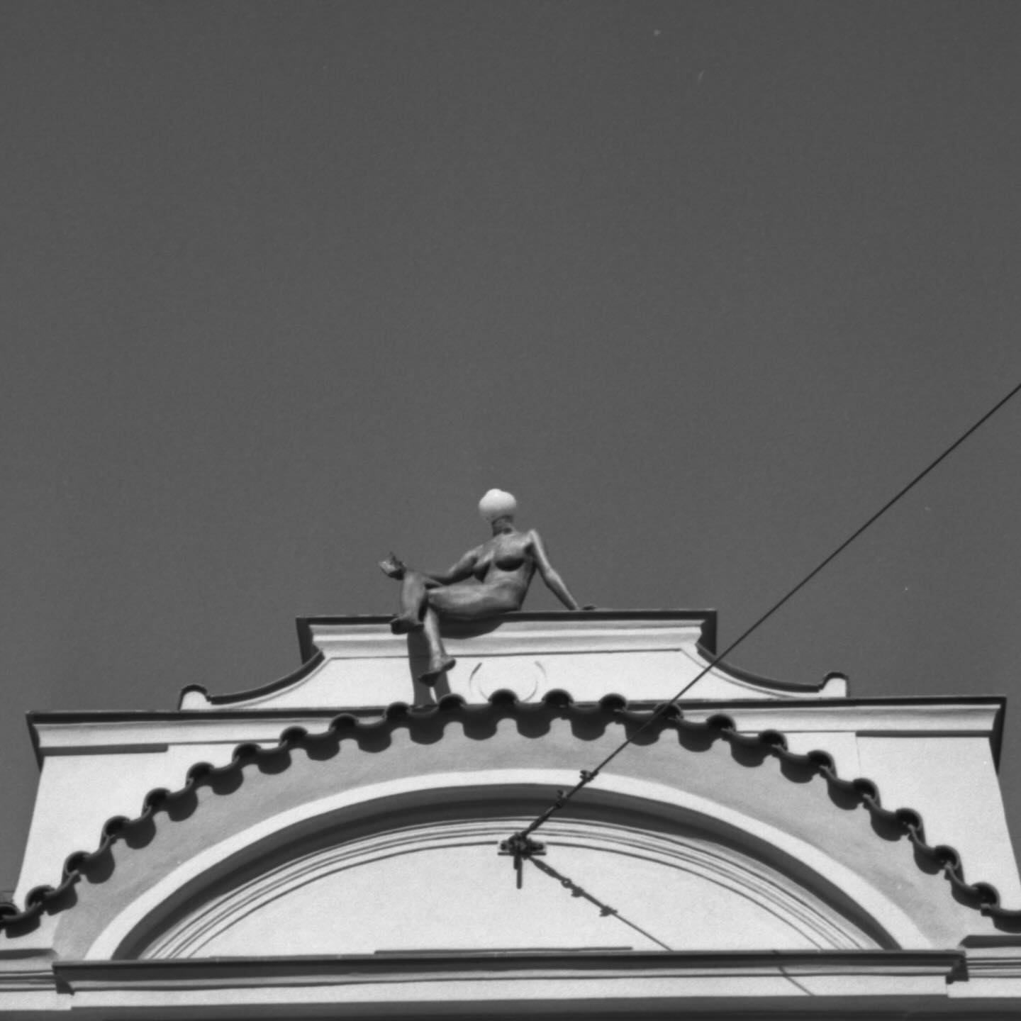 In Prague, with the poor man’s Leica, a Zeiss Ikon Contax IIIa. Also I think the first two with a Tiffen Red 25 filter because that makes it all look like I know what I’m doing. Also cropped a lot, because the law is that as soon as you only take a 50 mm lens everything of interest will be too far away. On Ilford Delta 100 IIRC.